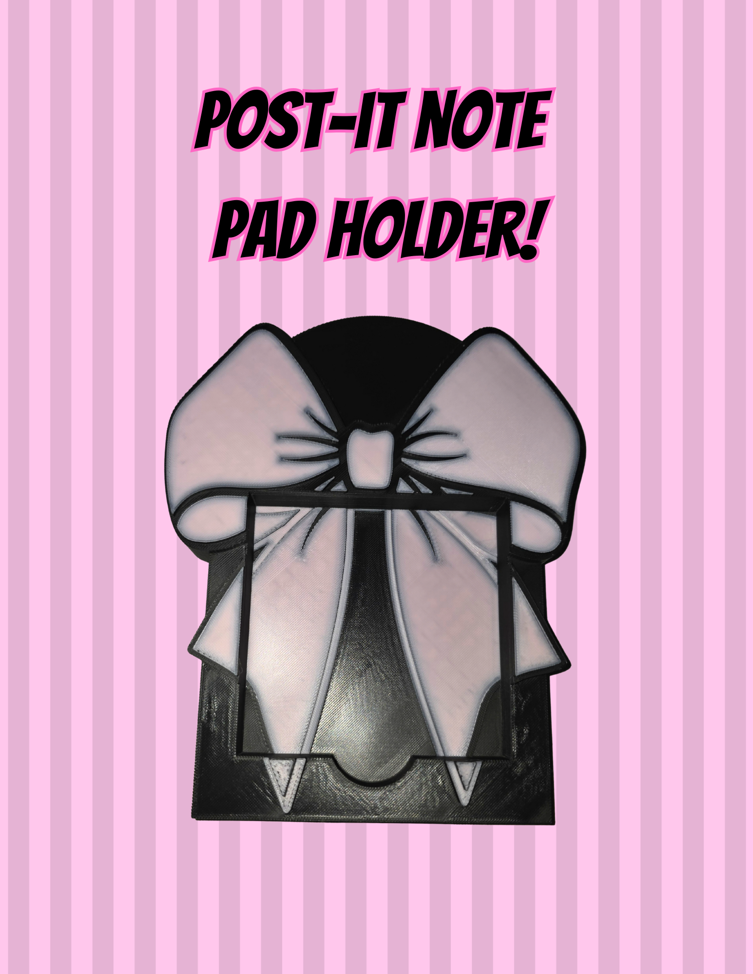 This 3D printed Post-it Note holder features an adorable oversized bow design that doubles as desk décor while keeping your sticky notes perfectly in place and easy to grab. The layered look gives it a clean, modern pop that stands out on any workspace, classroom desk, craft table, or office setup.